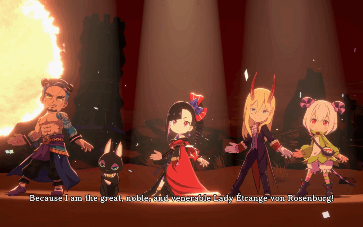 Announced just this last week and the answer to the question of Operas in Hell is Etrange Overlord. This is the new release from Disgaea creator Sohei Niikawa and it’s also set in hell – hey the guy has a very specific inspiration. You play as Étrange von Rosenburg, that sassy chibi in the red dress, who is falsely accused of assassinating the king and executed. She wakes in hell and being such a sassy force of nature decides to fight back, enslave the demons of the underworld and take over!
