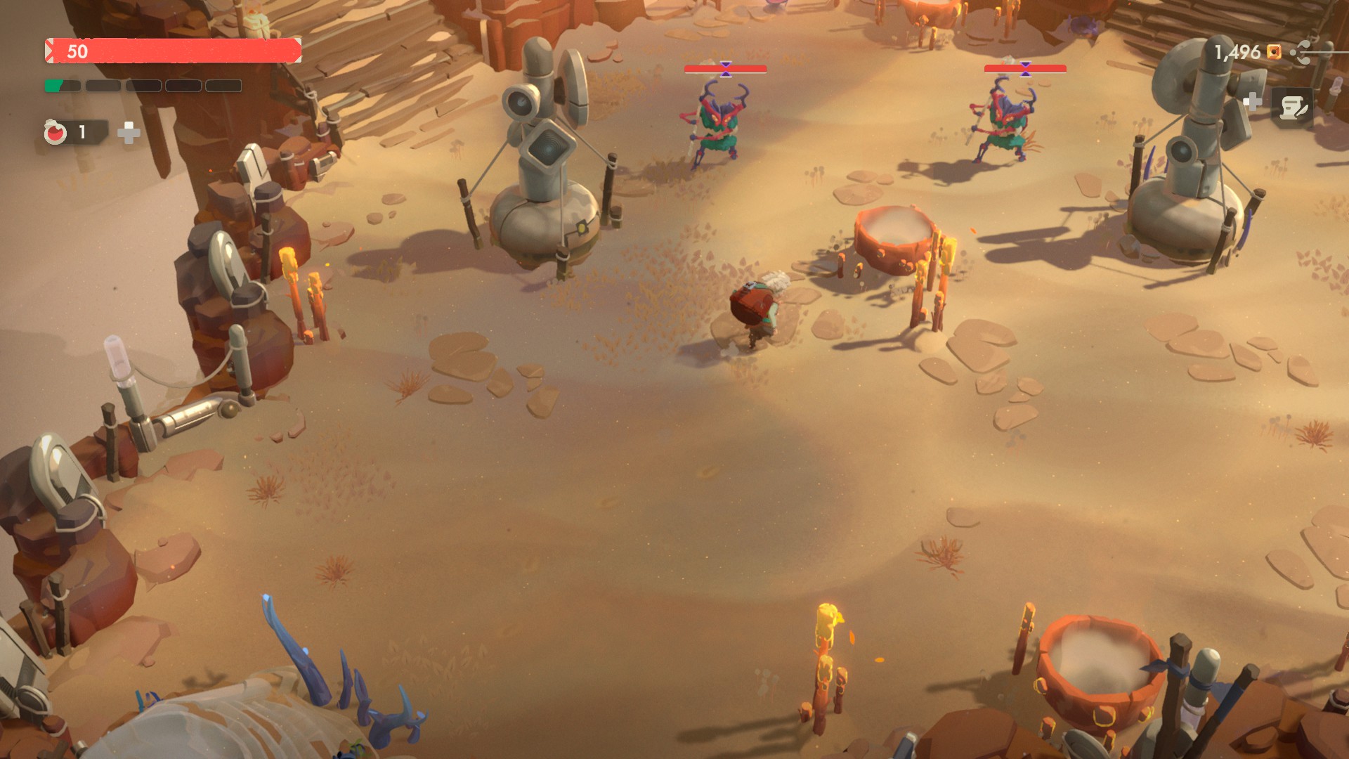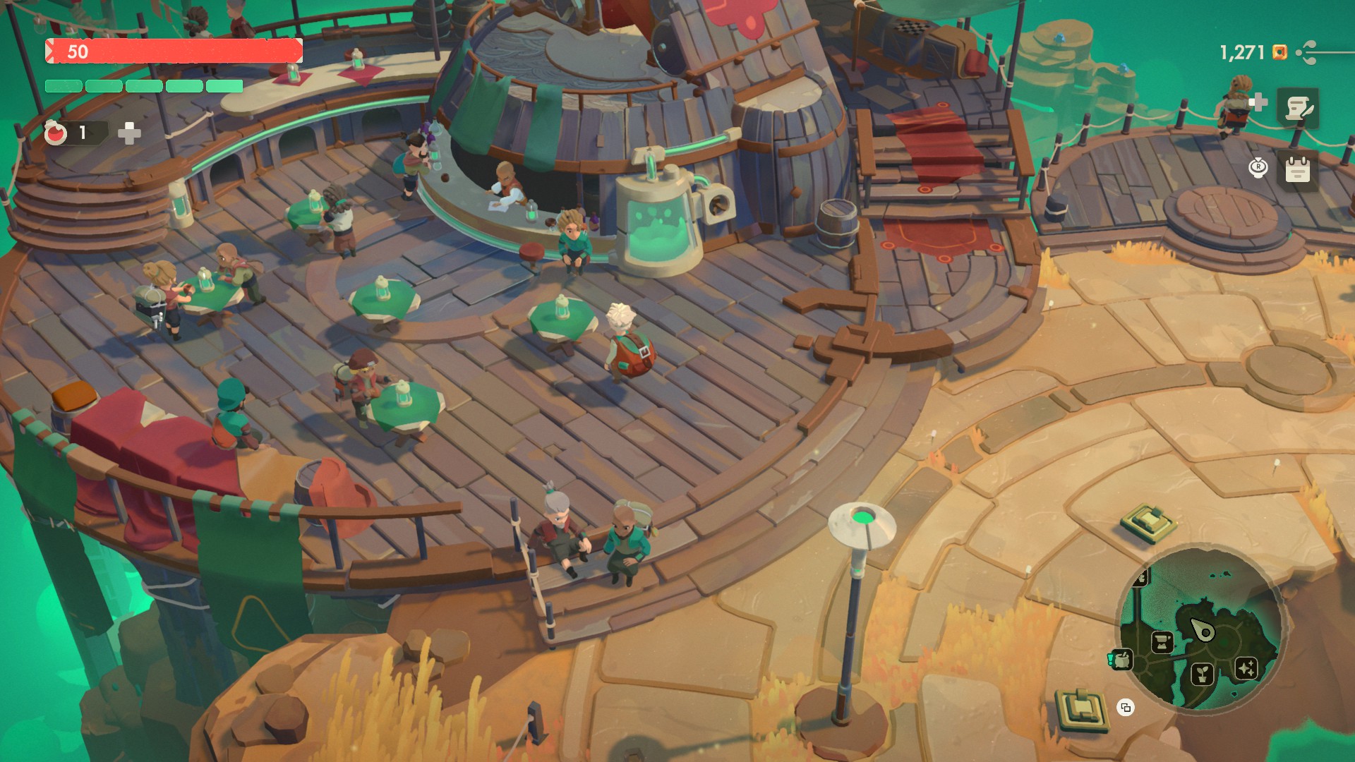 Somehow, despite the change to 3D, Moonlighter 2’s combat doesn’t feel that different. Which is quite the feat in a completely different engine. Will still has his signature weapons, he rolls and combos a simple special, and he moves quickly despite a very heavy backpack. A favourite of the new system is when you really pummel an enemy to low health, they’ll rupture, glowing purple, and you can whack them across the room with said backpack. Enemies are a nice mix of simple and difficult, and even getting to the final boss room on a run can prove tricky early on. Best to get a few upgrades, some armour, some potions, and try, try, try again.