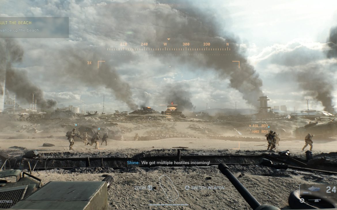 Finally, there’s the audio. This game is an absolute masterclass in first person shooter sound design. Sniper shots that whistle past your ear change based on their proximity to you. You’ll hear the crack of the sniper rifle going off, and if it’s really close to your ears, you’ll know it by the tone. If you land a headshot however, there’s this really satisfying crunch sound effect that’ll I’ll never tire of. Get shellshocked and that high pitch squeal that has been made iconic by the movies chimes in, pushing all the gun fire and commotion around you out of earshot. One surprising element is the music; the vast majority of every fight is played without a soundtrack, but towards the end of each battle, a rousing tune starts to play. It starts to frame the game play like a crescendo. I’d be lying if I hadn’t found myself feeling just that little bit more tense when the music starts.