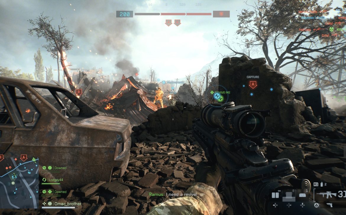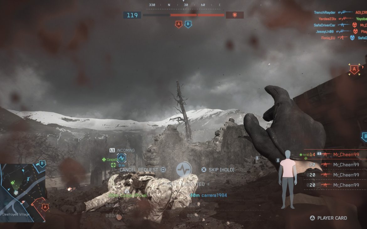 There’s bullets flying past my ear, puncturing the smoke and sandbags around me. A tank explodes and its turret springs into the air, tearing apart a building as it crashes to the ground. Jets are careering through the sky somewhere to my left. A squad mate is begging me to revive them to my right. I’m scared and I’m lying in the dirt, rethinking my tactic of a direct assault. It’s a familiar feeling in Battlefield 6.