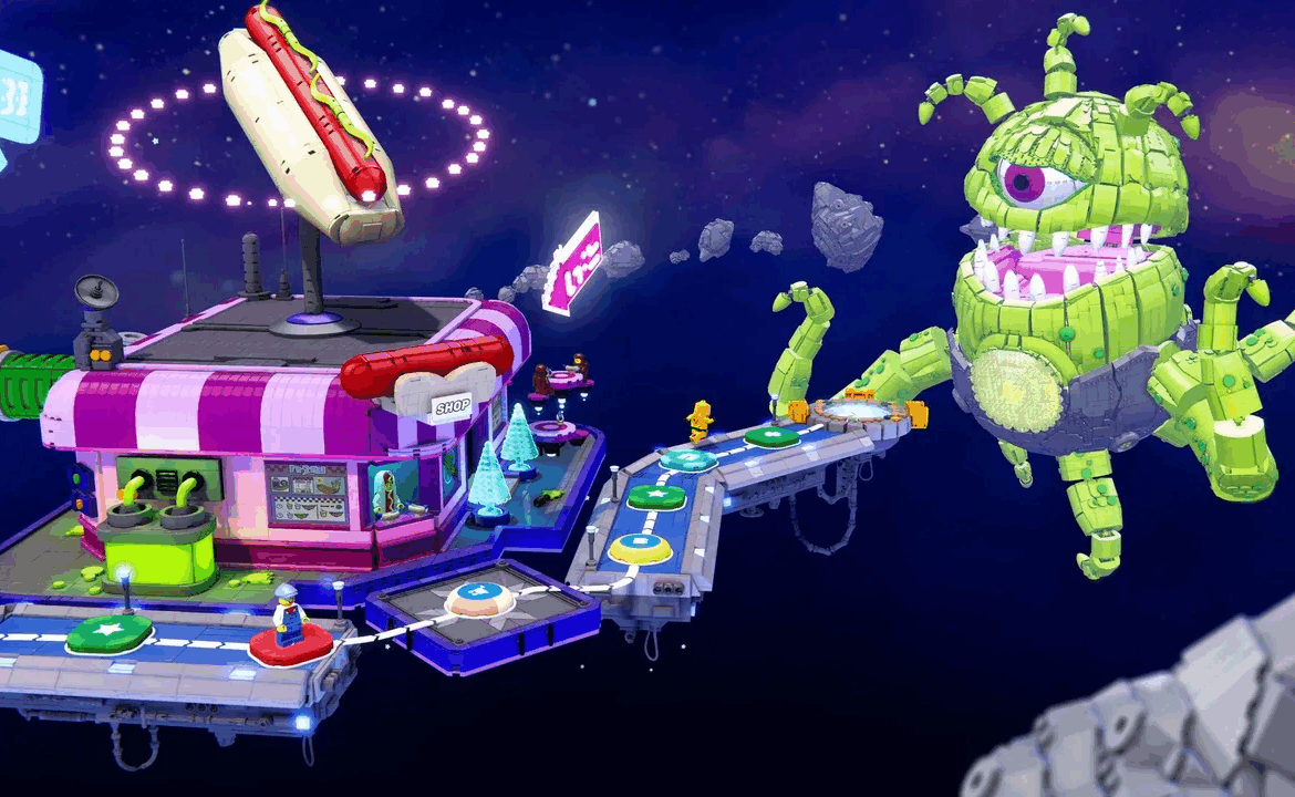 Gameplay wise, it’s all about collecting gold bricks, which, as you’d expect, trump your stud count, which is your in-game currency. The overall setup mirrors Mario Party, but the maps here feel much more dynamic and thematic. Whether you’re scaling a mountain, fending off an alien invasion, or dodging dragons in a Ninjago world or fantasy theme park, each board embodies the essence of a miniature LEGO set. This really stood out to me because it feels like you’re playing two games. One where you need to get the stars over your opponents, and the other means you need to kind of concentrate on the main gameplay element of the board itself as this can give you a massive advantage for the game.