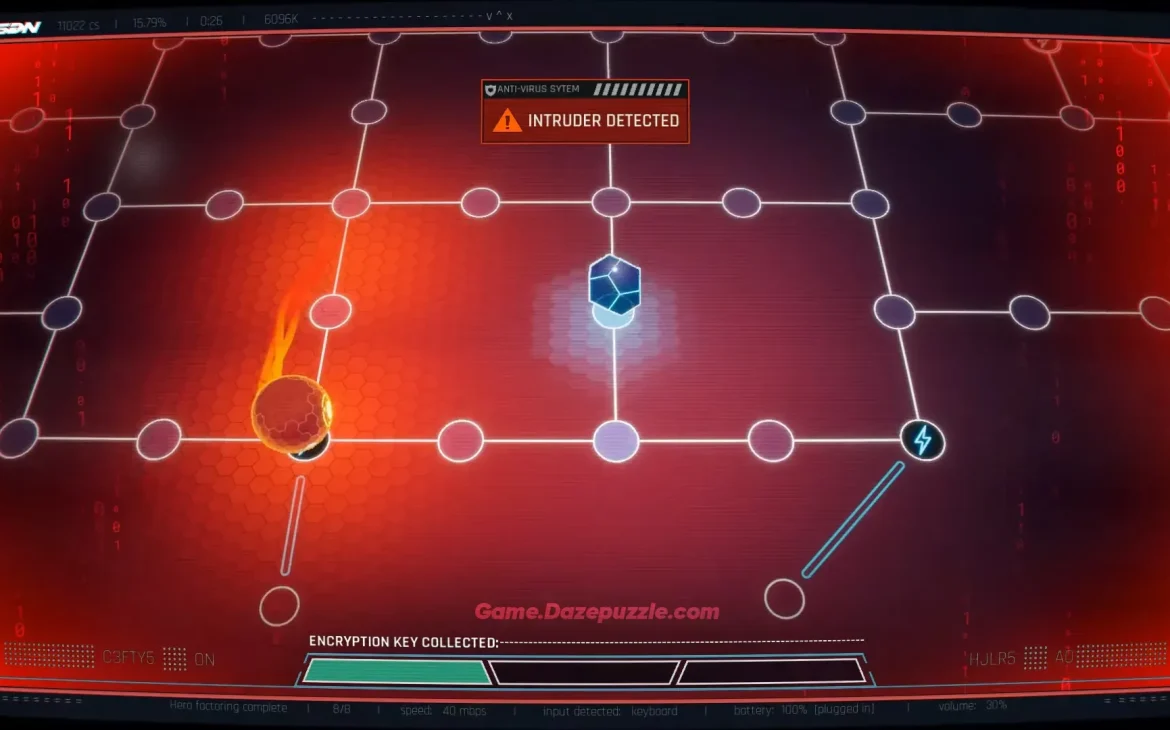 Robert will also be able to put his history with computers as Mecha Man to use during his dispatching career too. During each chapter of Dispatch, there is are a number of hacking mini-games. These task you with moving a shape around a maze of nodes in order to reach a green exit zone.