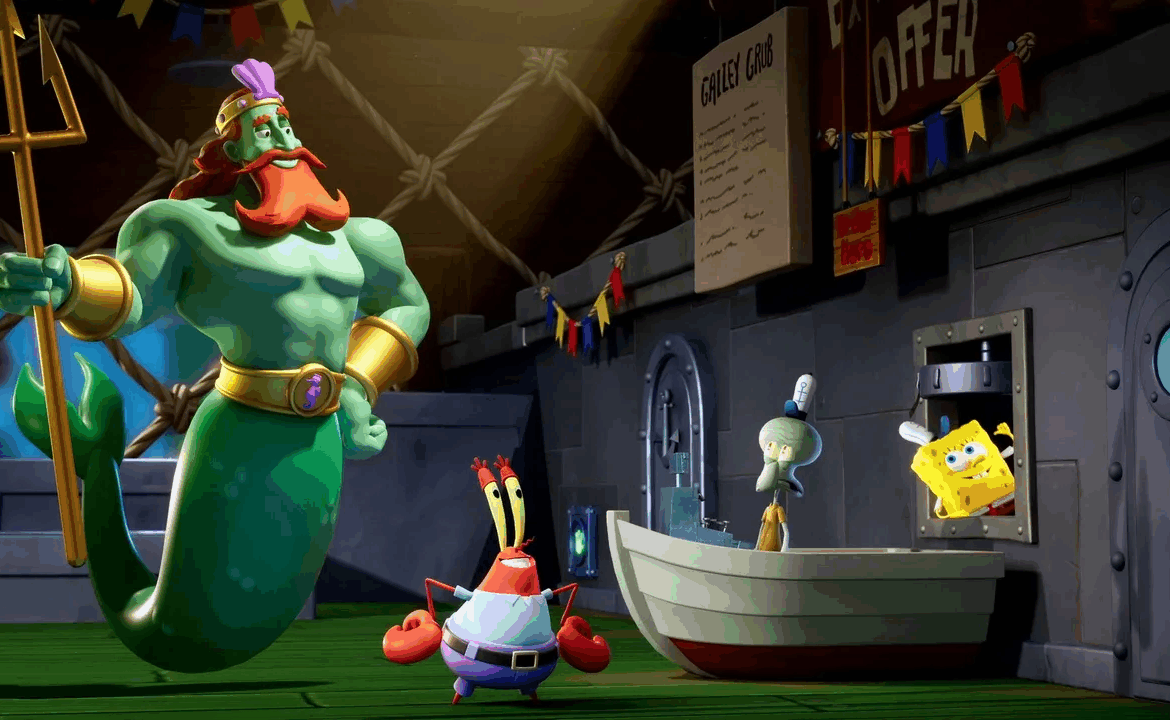 The story starts at the Krusty Krab, where you are effortlessly preparing for discounted Krabby Patties and the line is out the door and round the coral reef. Things start to kick off with a battle between The Flying Dutchman and King Neptune that shakes Bikini Bottom to its sandy core. With battle determining who rules the sea’s, the fall out is drastic, and the very fabric of Bikini Bottom has been altered.
