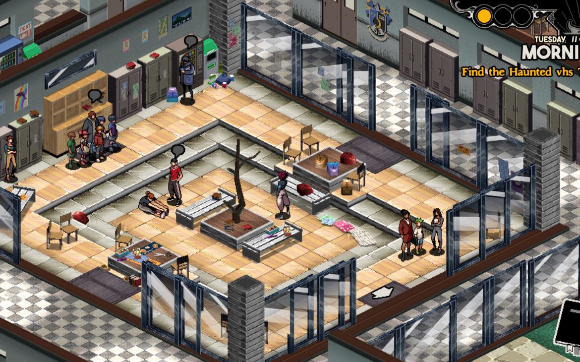 The game loosely follows a series of weekly assignments and a story that gets weirder and murkier the further you approach the coming apocalypse. It starts out with finding a cursed video cassette that kills any viewer within three days, ala The Ring, and the school faculty seem not to know the school is covered in demons, and then they do. And it’s simultaneously like no one knows about the demons, but at the same time, there are demons in almost every scene.