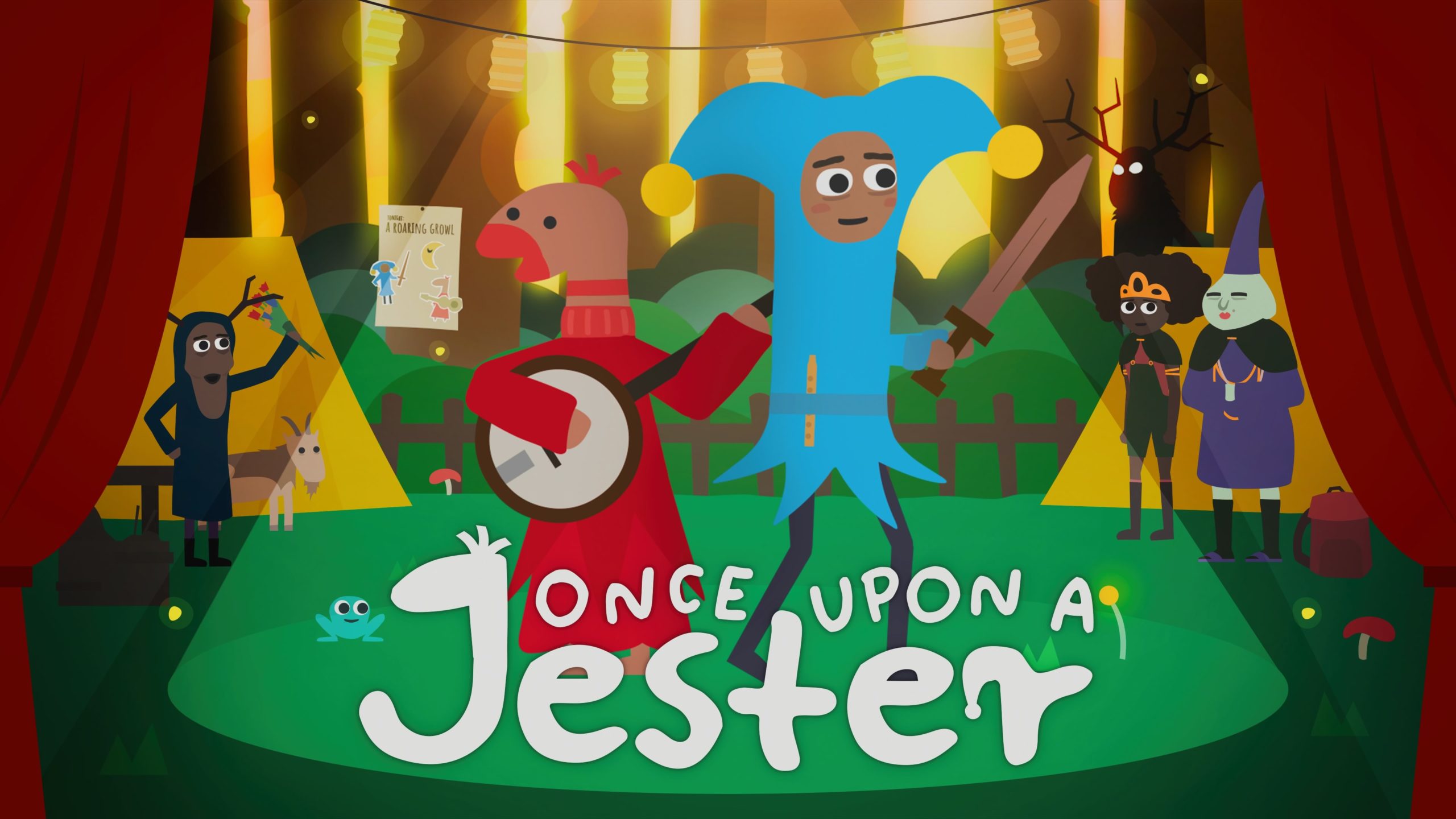As I type out the synopsis of Once Upon A Jester, I realise how much it sounds like a Peyote fever dream: “While dossing around Dorp Town, a pair of friends, a jester and a sentient sock man (Called Sok) hear of a contest being held by a Princess. The first troupe to receive 15 bouquets of flowers in each town of the land by performing stage shows will win a spot in a Royal show where they’ll perform in front of the King. The jester and the sock-person see this as an opportunity to get into the Royal castle and steal a giant diamond. So the roguish pair trot off on a musical adventure to get rich and inadvertently make friends along the way.“