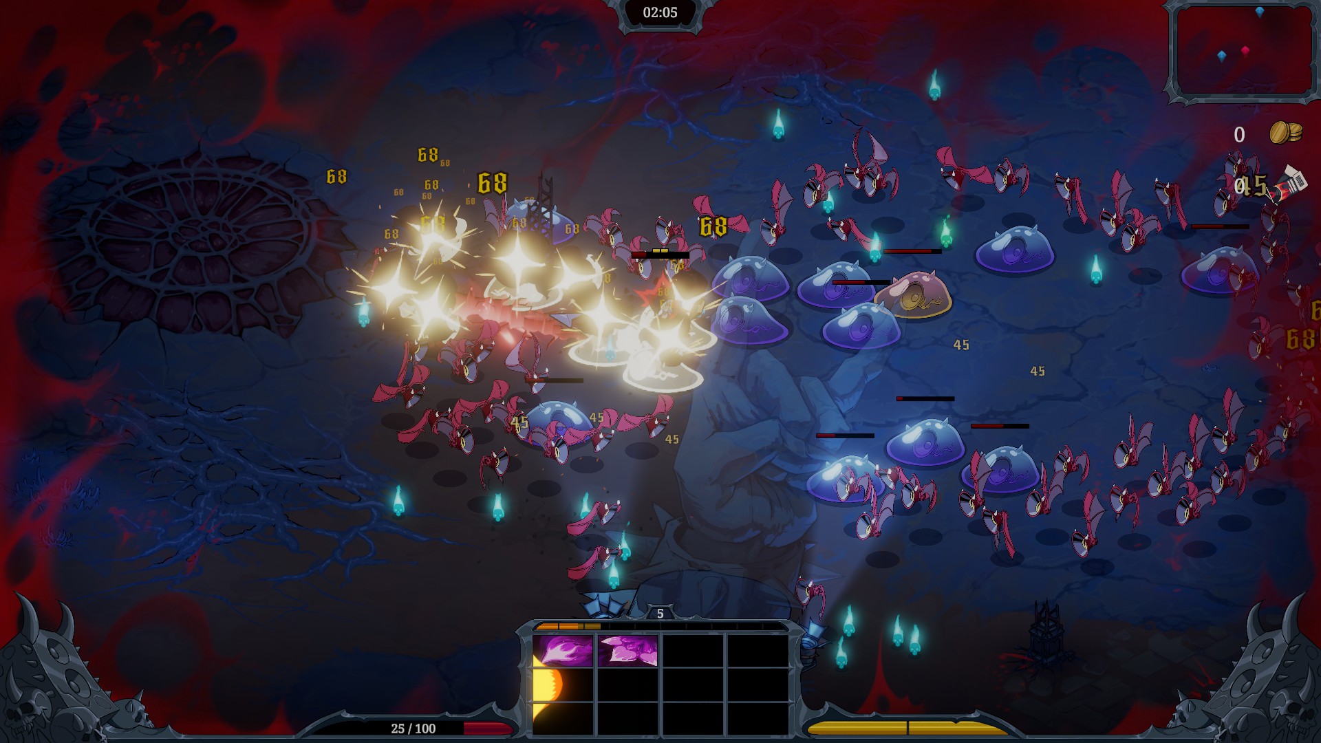 I was playing with controller, but the tenet is the same: unlike Vampire Survivors, our boy can aim. So you can add “twinstick shooter” on its categories too, if you want to oversell it.