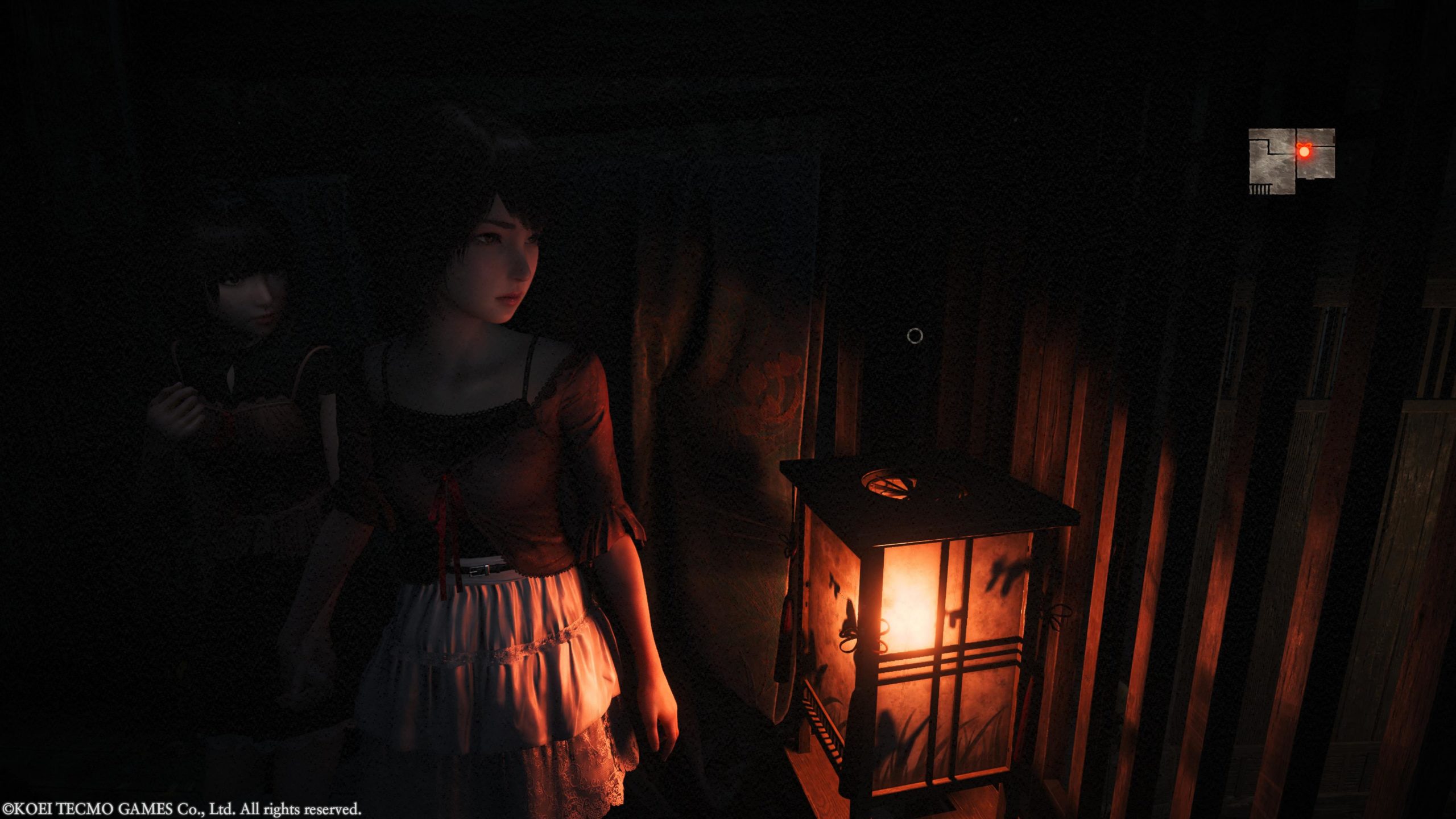Twin sisters Mio and Mayu are out for a stroll in the woods when all manner of creepiness starts to befall them. Even right from the first moments its clear there’s a question of whether Mayu is even there, as she seems to move and disappear at a moment’s notice. You witness an old memory of Mayu falling down a small cliff and getting hurt, we assume? Dying, who knows? In the present, Mayu draws her sister Mio, your player character, deeper into the woods, and they soon stumble across a village that should not be there. The lost village of Minakami.